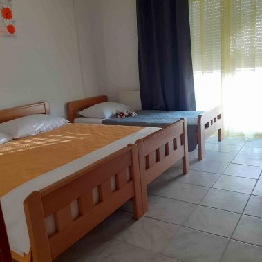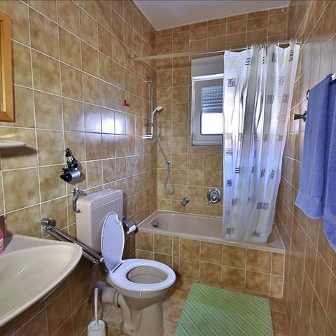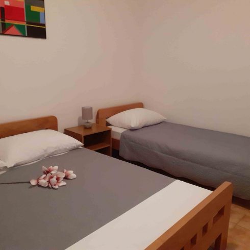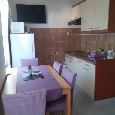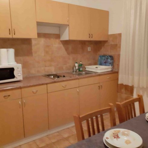 Die Ferienwohnung befindet sich im 1. Stock. Es besteht aus einem Schlafzimmer mit einem Doppelbett und einem Schlafzimmer mit einem Doppel- und einem Einzelbett, einer Küche, einem Raum zum Essen und Fernsehen, einem Badezimmer mit Badewanne und einer Toilette. Die Wohnung ist für 5 Personen.