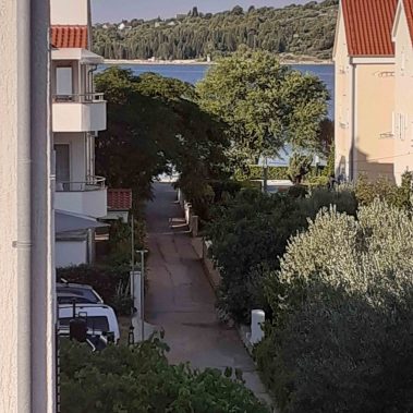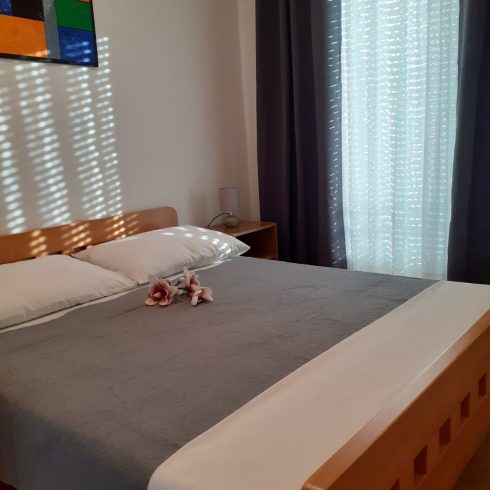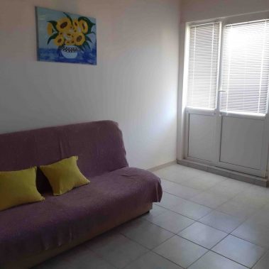 Die Ferienwohnung mit Meerblick befindet sich im 2. Stock. Es besteht aus einem Schlafzimmer mit einem Doppelbett, einer Küche, einem Ess- und TV-Bereich mit einem Schlafsofa, einem Badezimmer mit Dusche und einer Toilette. Die Wohnung ist für 4 Personen.