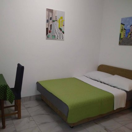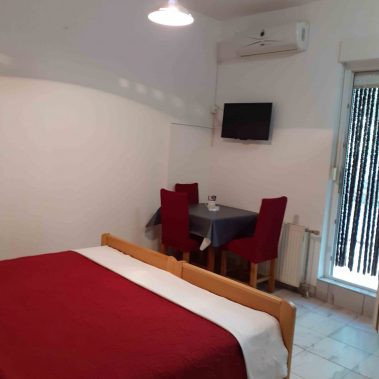 Apartman se nalazi na 2. katu. Sastoji se od spavaće sobe s bračnim krevetom, prostora za ručavanje i gledanje televizije s kaučem na razvlačenje, kupaonice s tuš kabinom i WC. Apartman je za 4 osobe.